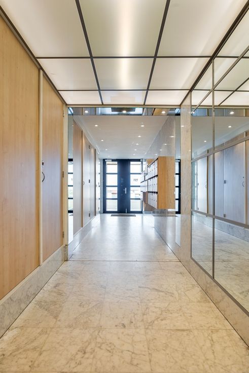 De ingang van het gebouw ligt op de Zeedijk.