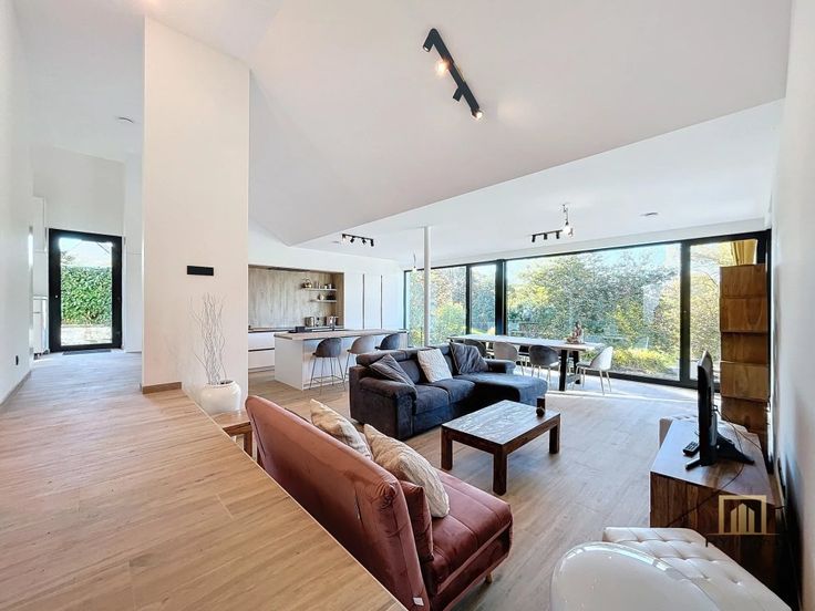 Un hall d'entrée avec un vestiaire, WC séparé, spacieux et lumineux séjour/cuisine ouvert de 55m² avec accès à la terrasse et au jardin orienté SUD-OUEST, hall de nuit, deux grandes chambres dont une avec accès à la terrasse, un bureau, une salle de douche à l'italienne a vec WC & buanderie.