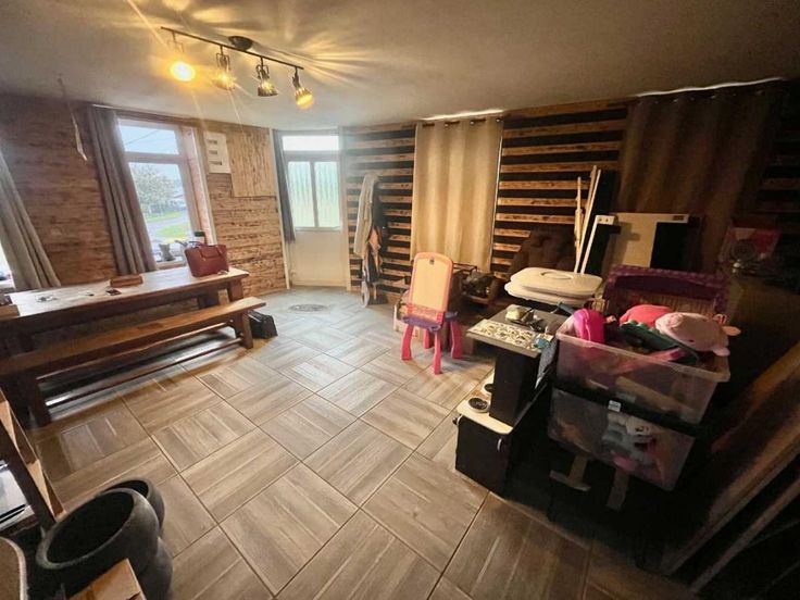 NOUVEAUTE 3 G IMMO. Proche la d' AVESNES. Maison semi plain pied élevée sur cave de 140 m2 construite en briques recouverte en ardoises qui comprend : Une cuisine ouverte sur double séjour de 50 m2, une chambre, salle de bains avec baignoire et douche, toilettes, buanderie. A l'étage un palier qui dessert trois grandes chambres de 25, 16 et 18 m2, grenier aménageable. Terrain d'environ 250 m2 avec terrasse et bâtiment, cave avec puits. Contact par téléphone au 06/02/10/86/09. Votre agent commercial 3G IMMO sur place EI - Frédéric LEDUC Inscrit au RSAC de SAINT-QUENTIN 791 442 023, Tel : 06 02 10 86 09, Site 3gimmo : https://archive.3gimmo.com/leduc Selon l'article L.561.5 du Code Monétaire et Financier, pour l'organisation de la visite, la présentation d'une pièce d'identité vous sera demandée. Les informations sur les risques auxquels ce bien est exposé sont disponibles sur le site Géorisques : www.georisques.gouv.fr