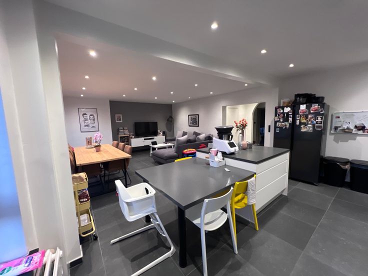 Dès l'entrée, vous trouverez un hall accueillant vous guidant vers un vaste séjour baigné de lumière naturelle, combinant harmonieusement salon, salle à manger et cuisine équipée pour des moments de convivialité inoubliables. La cuisine équipée ouverte vous invite à rester connecté à vos convives.
