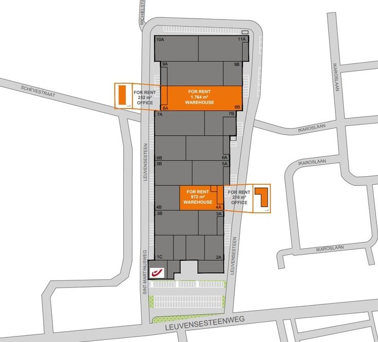 Dit magazijn biedt een oppervlakte van 972 m² met aansluitend een kantoor van 216 m².
