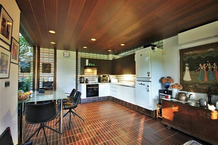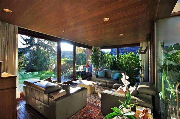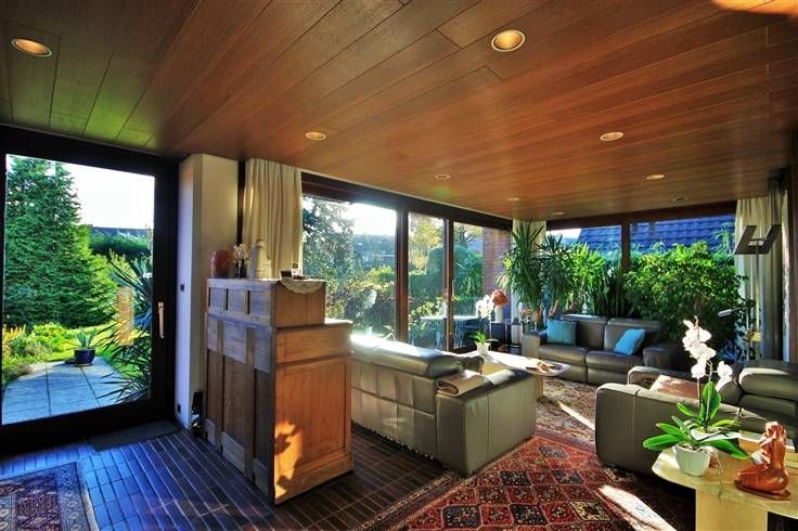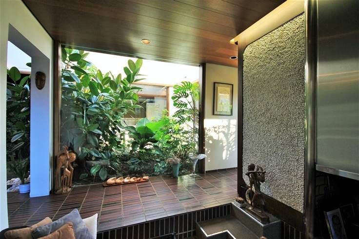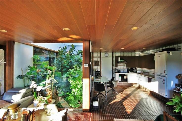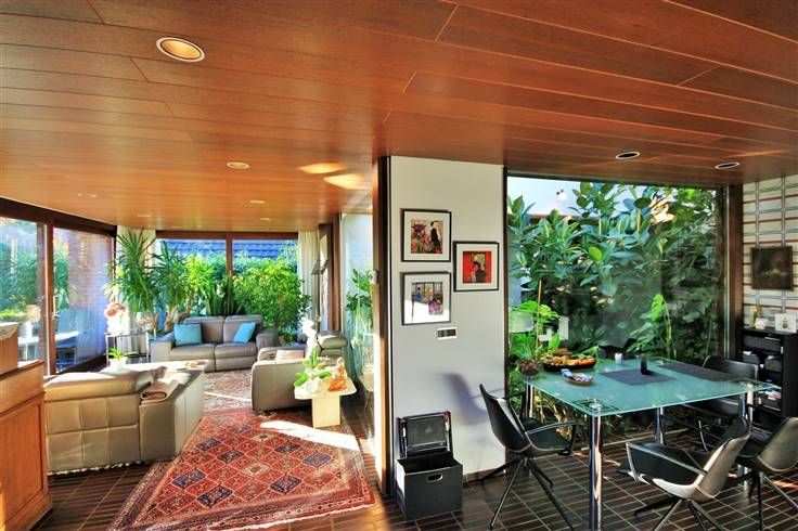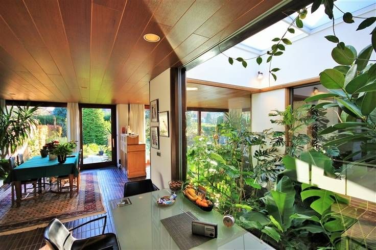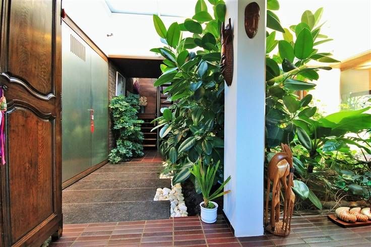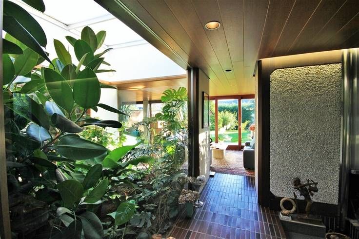 Un patio couvert, aménagé avec différentes plantes exotiques, situé au centre du bâtiment, permet, pour l’ensemble des pièces du rez-de-chaussée, de profiter de la clarté de ce puits central.