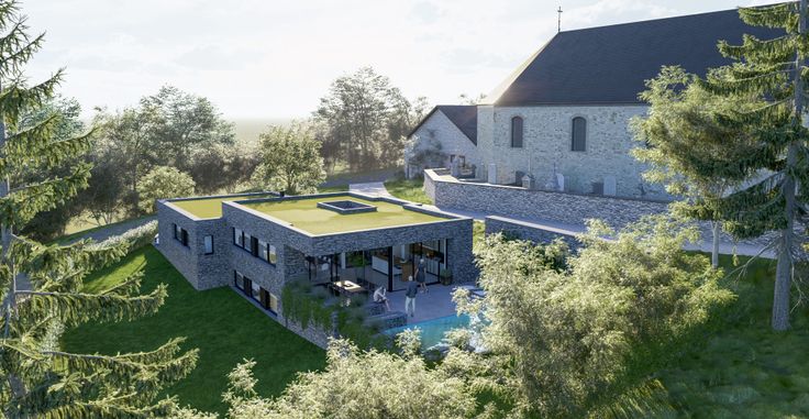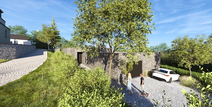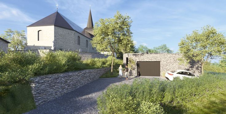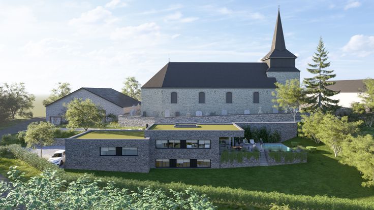 Situé au pied de l'église classée du village de Oizy, ce projet d'habitation contemporaine s'implante dans un clos fermé, ceint d'une haie vive, privatisant entièrement le terrain.