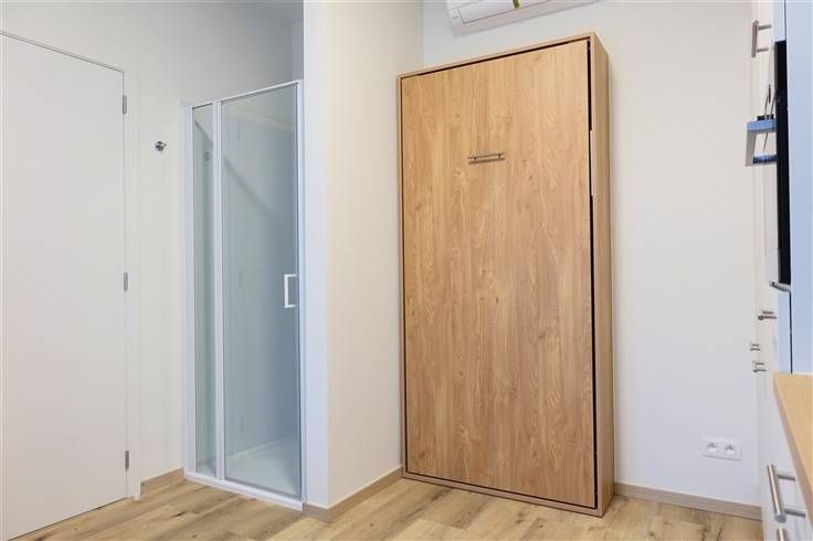Leef- slaapruimte met uitklapbed, open geïnstalleerde keuken, douche. Toilet is apart op de gemeenschappelijke gang (te delen met 1 medebewoner).