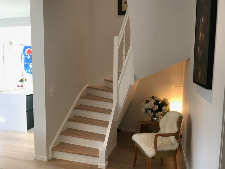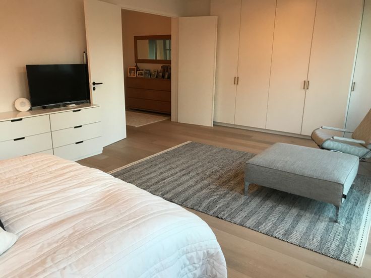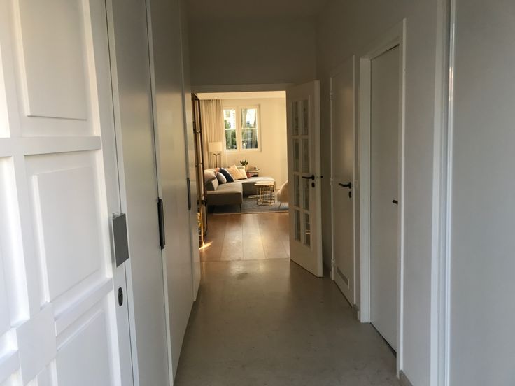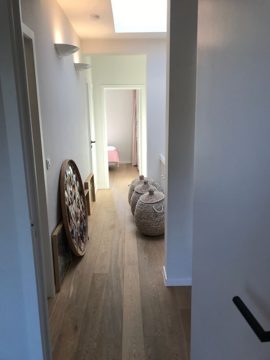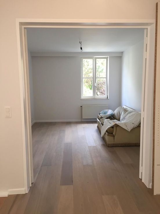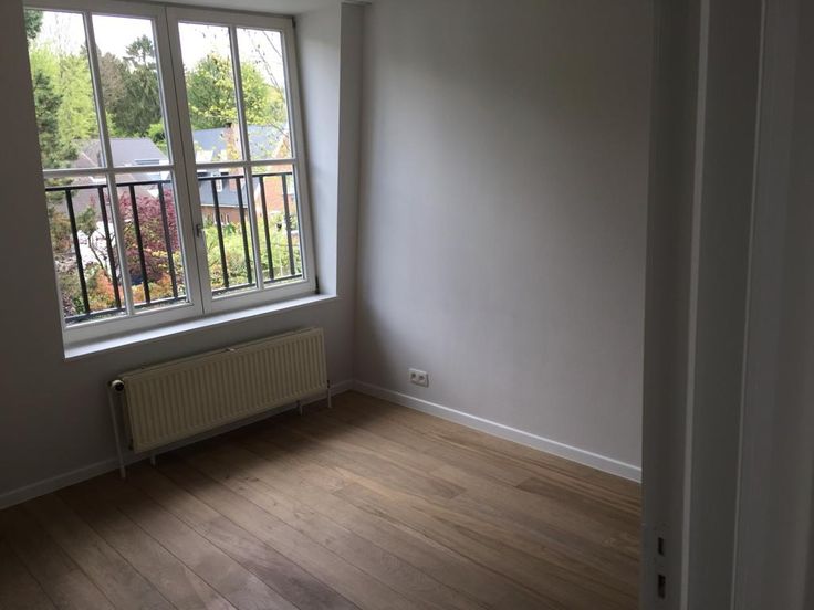 b. Geoliede eiken vloeren, witte muren.