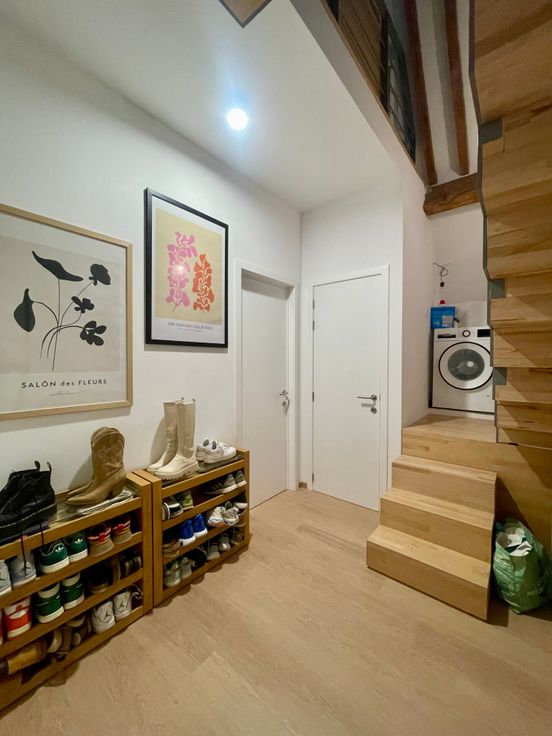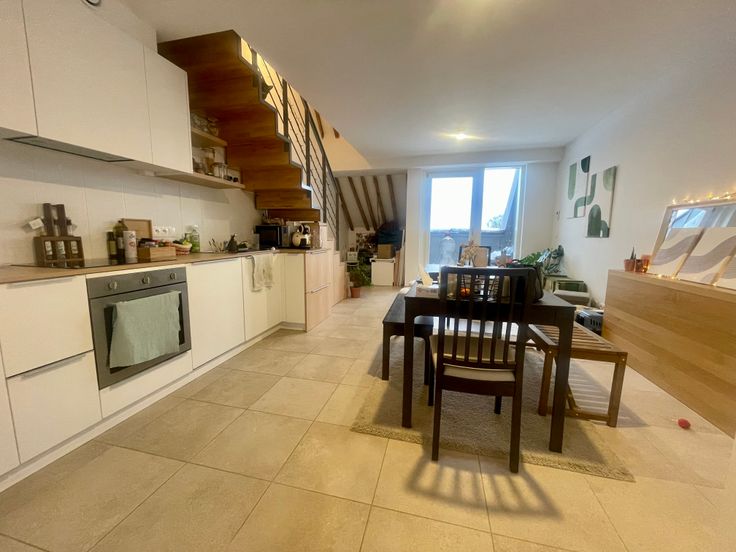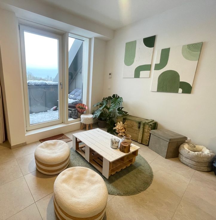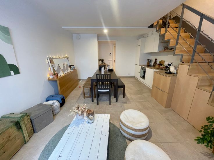 Twins-Immo, vous présente ce luxueux appartement 2 chambres. Il se compose comme suit : un hall d’entrée, une pièce de vie ouverte (salon, SAM, cuisine), une terrasse, une chambre. Au 1er étage: hall de nuit avec coin buanderie, SDB. Au 2e étage, la mezzanine vous fera profiter d'une seconde chambre. Châssis PVC double vitrage, vidéophone, VMC double flux, construction 2022, cour commune, jardin, piscine avec 2 bassins prévue, panneaux photovoltaïques pour les communs, cave et emplacement de parking prévus... .Bail de 1 an renouvelable. Disponible au 15/02/2025. Loyer 900€/mois, provision de 185€ de charges (Chauffage privatif + communs + eau chaude privative).