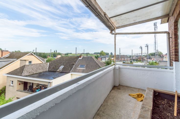 het station en centrum van Edingen! Op de derde verdieping: inkomhal (5.37m²), apart toilet, leefruimte/eetplaats (22.55m²), nieuwe keuken met ontbijthoek (9.05m²- kookplaat, oven, dampkap, vaatwasser, verlek, koelkast), 2 slaapkamers (12.11m² / 11.39m²), badkamer (2.91m² - lavabo met meubel en kast, douche). Verder: garage, ruime kelder, terras (5.44m²)