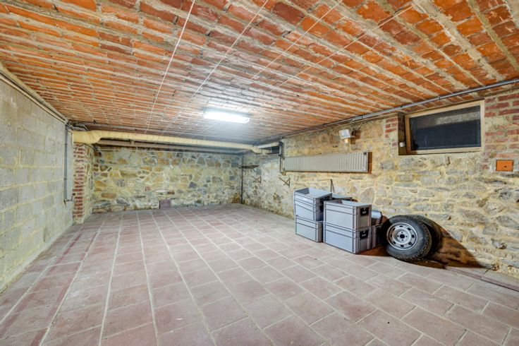 De woning is als volgt ingedeeld: Op de begane grond: inkomhal, kantoor van 10m², multifunctionele ruimte van 16m², 2 toiletten, keuken, eetkamer, ruime woonkamer/eetkamer van 50m² en een tweede woonkamer van 36m² met mezzanine van 16m². Op de eerste verdieping: nachthal, 5 slaapkamers van respectievelijk 13, 10, 16, 14 en 12,5m², een douchekamer en een opslagruimte/ zolder. In de kelder: verschillende kelders met een totale oppervlakte van 85m².