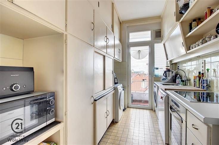 Sorry er is geen nederlandse vertaling beschikbaar. SCHAERBEEK: Limite Woluwe-Saint-Lambert, idéalement situé dans le très beau quartier des Cerisiers, à proximité des transports, des commerces et des grands axes, l'agence CENTURY 21 Wolu Way vous propose ce très bel appartement de ± 130 m² (SIM*) logé au 5e et dernier étage d'un immeuble avec ascenseur. Il se compose d'un hall d'entrée, un lumineux séjour de ± 35 m², une cuisine avec balcon, trois chambres (± 9, 17 & 18 m²) et une salle de bains. Vous pourrez profiter d'une grande terrasse de ± 16 m² exposée Sud-Ouest. Cave privative en sous-sol. Actuellement loué (voir conditions en agence). A visiter sans attendre ! 420.000 €. PEB : F. Installation électrique conforme. RU consultables sur dde. CENTURY 21 Wolu Way 02 733 21 21. D'autres biens disponibles sur www.century21.be | (*surface intra-muros -> suivant le code de mesurage des surfaces applicable aux immeubles bâtis).