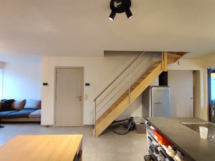 Huurprijs € 825,00 + € 20,00 AK Bent u op zoek naar een modern appartement in het hart van Kalken? Gevonden!! Dit perfect onderhouden duplex-appartement heeft een praktische open keuken met bergplaats en toegang tot het zuiderterras, alsook een lichtrijke woonkamer met zithoek. Op de bovenverdieping bevinden zich 2 slaapkamers, alsook een luxueuze badkamer met toilet, inloopdouche en dubbel lavabomeubel. Troeven: zeer laag energieverbruik, ideale ligging en instapklaar + 1 buitenstaanplaats ter beschikking!! Snel zijn is de boodschap! Beschikbaar vanaf 1 februari 2025