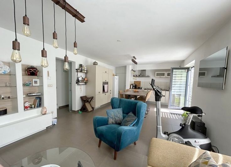 Sympathique appartement situé au rez-de-chaussée d'une petite copropriété comprenant: Hall d'entrée - Living - cuisine équipée - Hall de nuit - 2 chambres - WC Individuel - SDB - Buanderie et débarras - Extérieurs: Terrasse et jardin privatif - Parking latéral privatif - Châssis PVC DV - Chauffage électrique - PEB Label C 150 Kwh/m².an - Electricité CONFORME - Un tout bel appartement au calme - Loyer de 850€ charges communes comprises - Libre au 01/02/2025