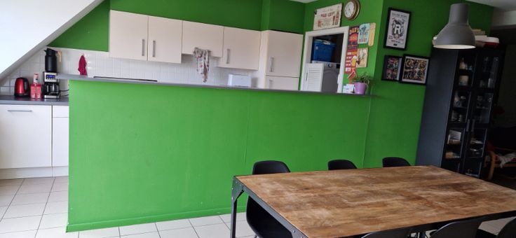 Centrum Aalst, rustig gelegen ruim 2-slpk-app met terras aan de achterzijde van het gebouw , op 3de V met lift. Hall, ruime living met open ing. keuken en aansluitend berging/wasplaats, badkamer met ligbad en toilet. Autostaanplaats op de afgesloten koer. Berging op het gelijkvloers en algemene fietsenberging. Individuele tellers voor water, gas en elektriciteit. Beschikbaar vanaf 1/2/2025. Geen huisdieren cfr. het intern reglement.   € 895,- alg. onkosten inbegrepen. Renovatieplicht: onbekend