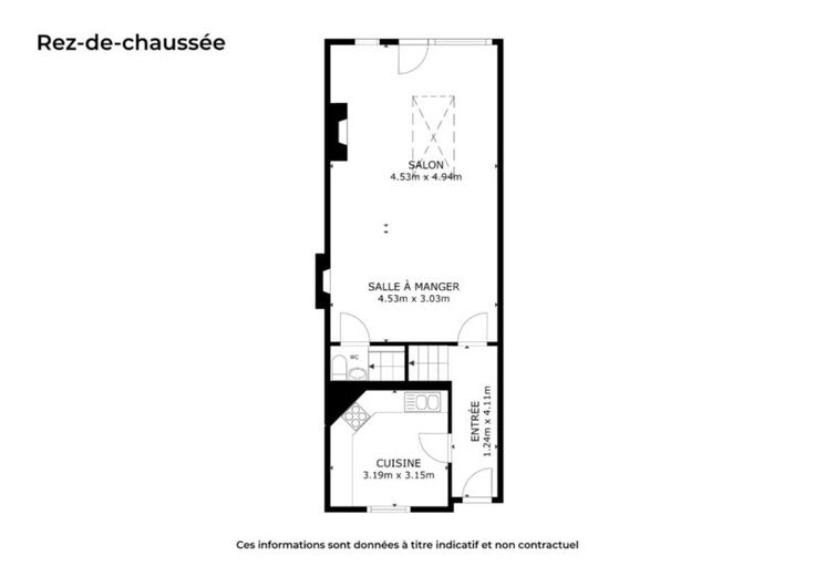 maison comprenant au rez-de-chaussée: hall d'entrée, cuisine, séjour, WC ; au sous-sol une buanderie; au 1er étage: 2 chambres et une salle de bains (avec douche, évier et WC) ; au 2ème étage: 1 chambre et 1 grenier. Bon état général