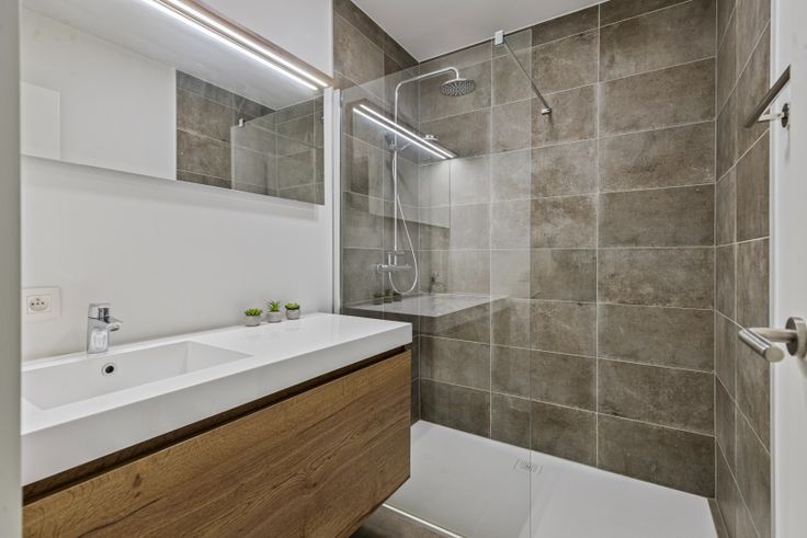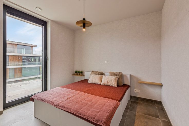 Het appartement bevat 2 slaapkamers waarvan 1 is voorzien met ingemaakte kasten, een badkamer met inloopdouche en wastafel + meubel en een apart gastentoilet.