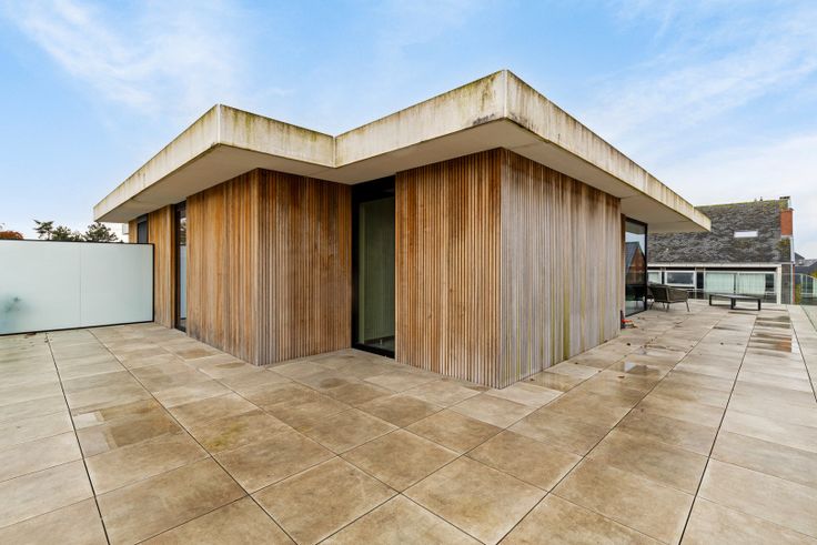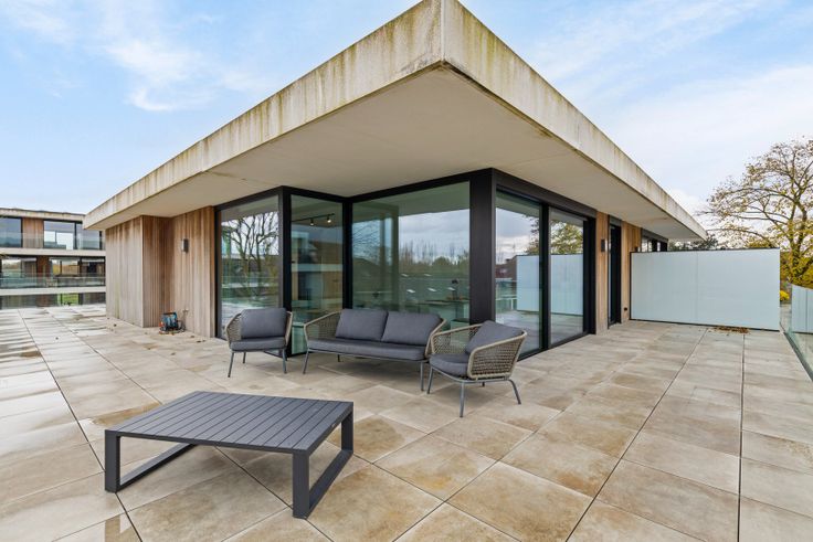 Buiten vinden we een gigantisch terras, dewelke de mogelijkheid geeft om op elk moment van de dag van de zon te genieten.
