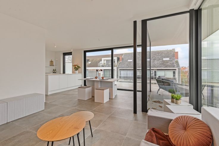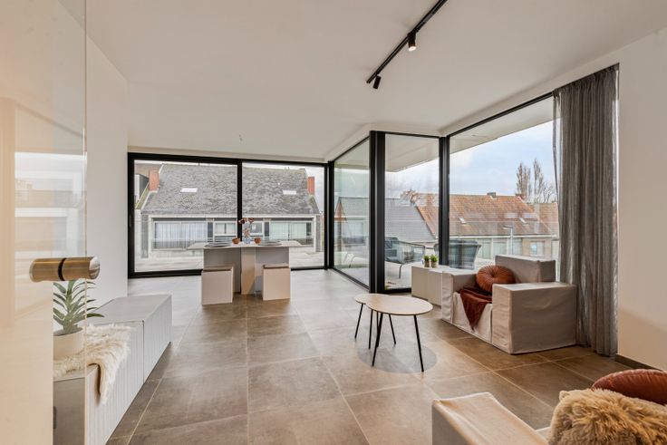 De lichtrijke woonkamer biedt een prachtig zicht richting centrum Kortemark waardoor het er enorm gezellig vertoeven is.