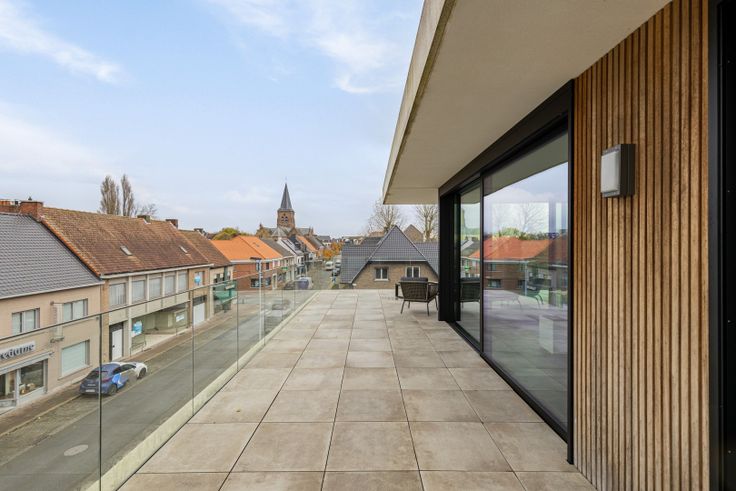 In het centrum van Kortemark, op wandelafstand van het station én op wandelafstand van de markt, vinden we dit 2 slaapkamer penthouse appartement met gigantisch terras.
