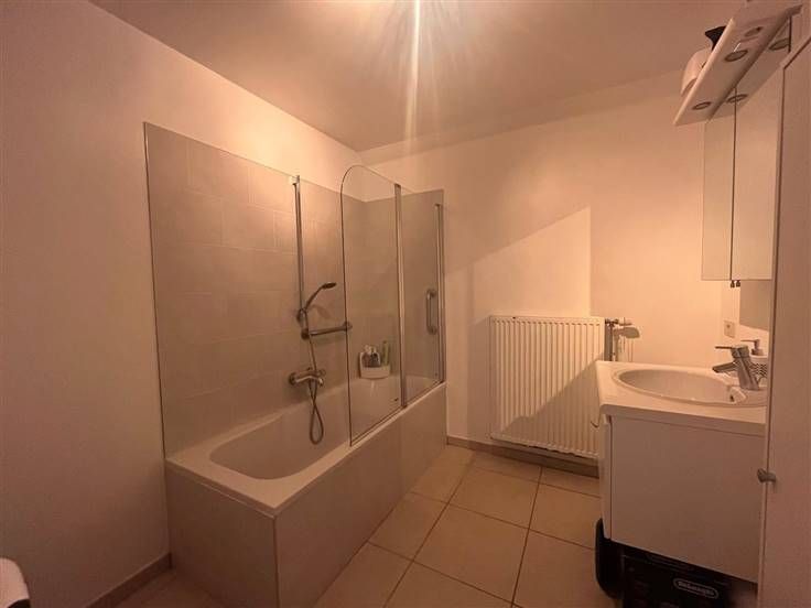 Sorry er is geen nederlandse vertaling beschikbaar. Appartement 2 chambres avec terrasse Composition: hall d'entrée avec wc séparé, vaste séjour lumineux comprenant salon/salle à manger avec accès sur le balcon, cuisine équipée avec taques électrique, hotte, four, évier et frigo et coin bar. Deux chambres dont une grande avec balcon, salle de bain avec baignoire/douche, lavabo et coin buanderie, garage avec porte sectionnelle motorisée. Caractéristiques: situé au calme, chauffage central au gaz, châssis PVC double vitrage, compteurs individuels. Quote-part à charge du preneur en vue de la rédaction de l'état des lieux d' entrée : 484,00 TTC. Montant non réclamé au preneur si désignation d'un autre expert qu'IMMO123. Garantie locative: 2 mois de loyer Loyer: €800 (garage inclus) Charges communes: 50 euros Libre 01/02/2025