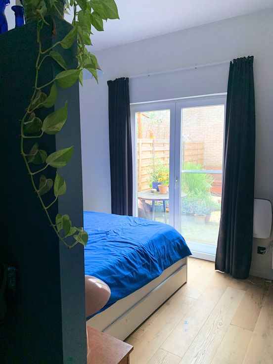 De master bedroom is voorzien van hoge plafonds en een ingebouwde inloop dressing. Via de slaapkamer heb je toegang tot de gezellige zuidgerichte, groene stadstuin. Het grondoppervlak: 81m² , bewoonbaar oppervlak: 57m²