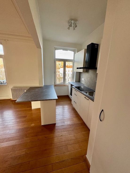 Sur la jolie Place générale Jacques à Verviers, Duplex entièrement remis à neuf d'une surface habitable confortable avec le charme de l'ancien au sein d'une maison de 3 appartements. Deux chambres de grands volumes. Salle de douche.