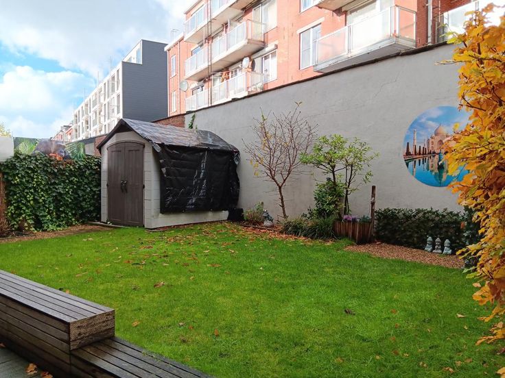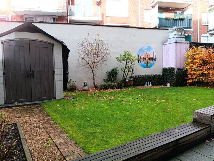 tuin voorzien van een tuinhuis
