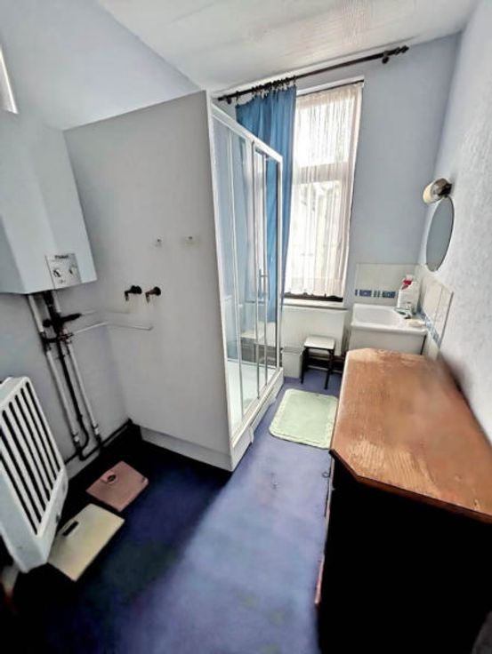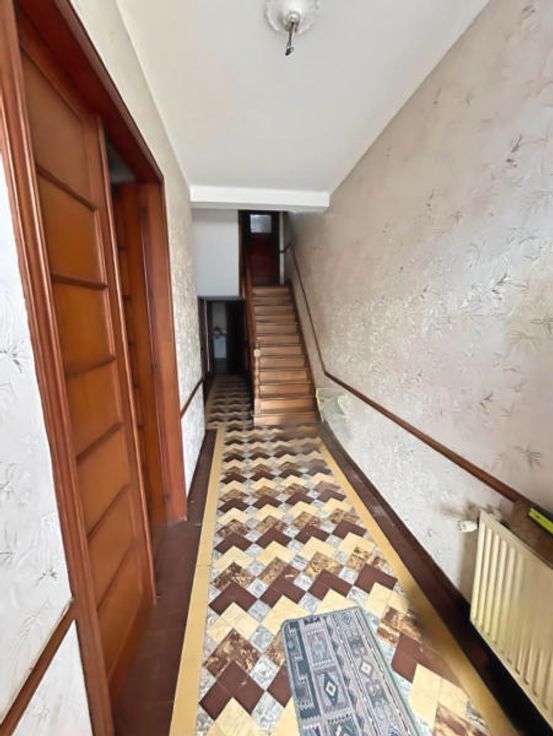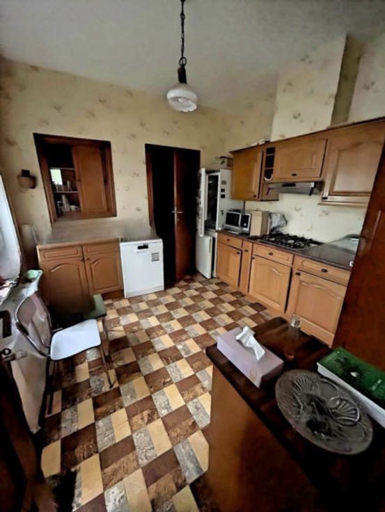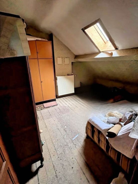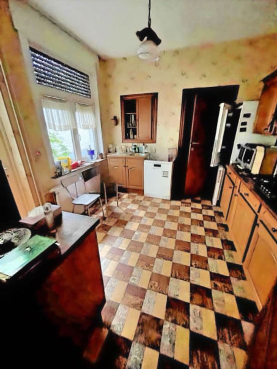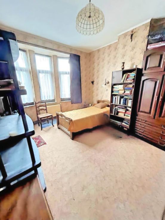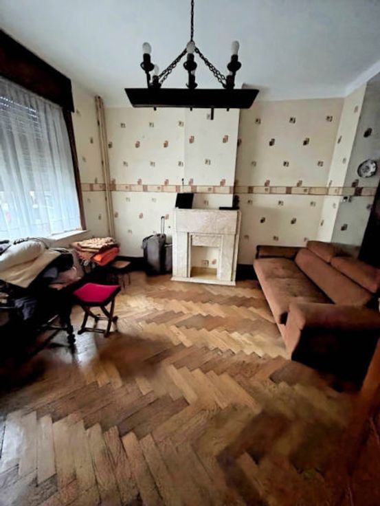 Andere uitrusting:, Blinden, Dubbele beglazing . : . Elektrische uitrusting: Thermostaat . :, . Eerste verdieping:,, Doucheruimtes, Slaapkamer, Slaapkamer . Gelijkvloers: Woonkamer, Inkomhal, Keuken, Achterkant keuken . Kelderverdieping: Kelder