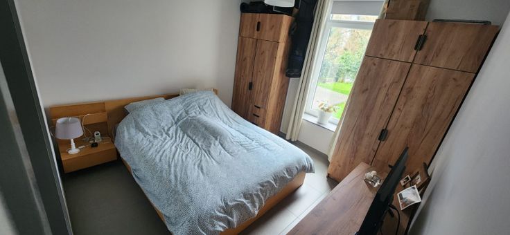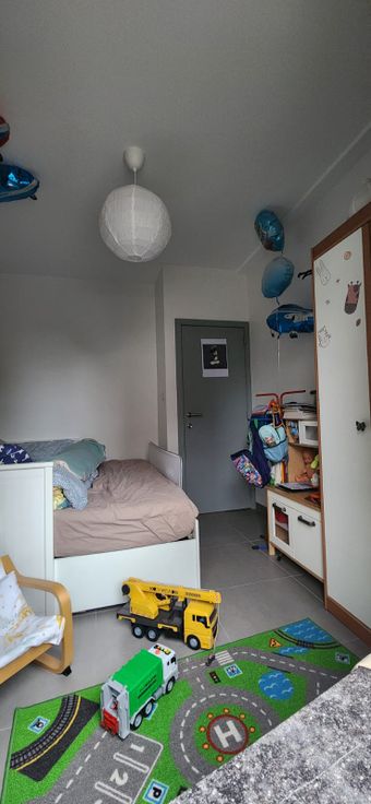 La maison se compose d’un hall d’entrée, d’un living, d’une cuisine semi-équipée avec four, plaque vitrocéramique et nombreux rangement, une salle de bain avec douche et installation prévue pour lave-linge et sèche-linge, wc séparé avec lave-main, deux belles chambres, une grande cave et un grenier sur toute la surface de la maison ; carrelage partout ; une terrasse et un jardin entièrement clôturé ; un passage latéral vous permet d'accéder de la rue au jardin sans passer à l'intérieur de la maison. Cette maison est idéale pour un couple avec un jeune enfant ou ayant besoin d'un espace bureau. Chauffage au sol par pompe à chaleur ; Double vitrage. Ventilation double flux de type D - aucun problème de parking dans la rue juste devant la maison.