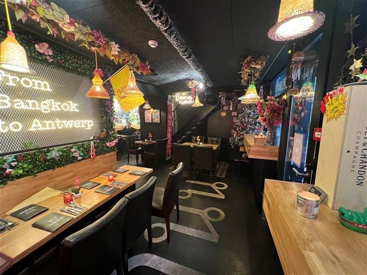 Gezellig Aziatisch restaurant in het toeristisch hart van Antwerpen| Je kan hier zowel een lekkere coctkail nuttigen of genieten van heerlijke Thaise specialiteiten | Openingsuren dinsdag tem zondag (12u-22u) - zitplaatsen binnen 34 + 20 zitplaatsen terras | Huur : 4.600 EURO (met 3 maanden borg) - Vraagprijs : 80.000 EURO