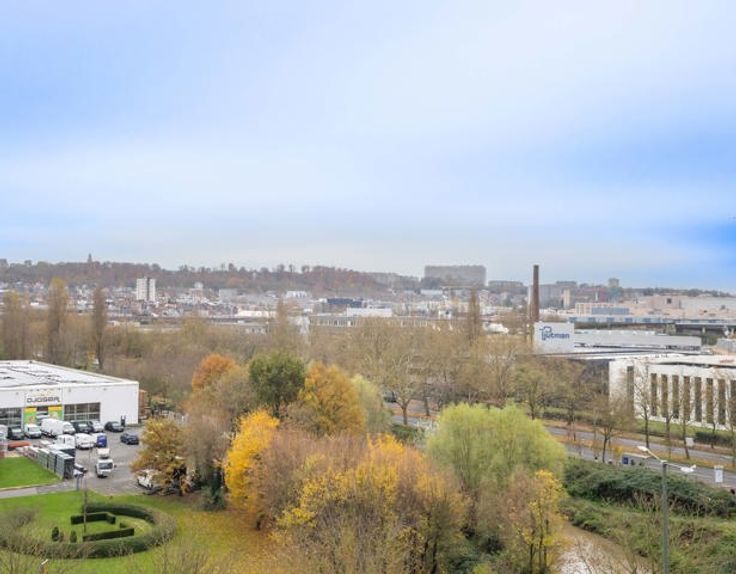 ANDERLECHT - 2-BEDROOM PENTHOUSE MET PANORAMISCH UITZICHT OP HET KANAAL, gelegen in het project 2021 “Atlantis”, biedt dit prachtige penthouse (±113m²) op de 7e verdieping een uitzonderlijke levenskwaliteit, dicht bij het centrum van Brussel, de Ring en het openbaar vervoer (trein, metro, tram, bus). U profiteert ook van handige winkels en diensten op de begane grond (crèche, apotheek, Carrefour Mestdagh). Het penthouse bestaat uit een hal, een apart toilet, een bijkeuken en een ruime woonkamer (ca. 44 m²) met parketvloer. De open keuken, uitgerust met SMEG/Miele apparatuur van topklasse, geeft uit op een prachtig terras op het zuidoosten/zuidwesten van ca. 62 m², ideaal om van de zon te genieten. Het slaapgedeelte bestaat uit een ouderslaapkamer met dressing (±14,5m²) en een tweede slaapkamer (±11m²) met en-suite doucheruimte. Een grote inloopdouchekamer maakt deze woning compleet. Inbegrepen: kelder, rolluiken en lichtarmaturen. Mogelijkheid tot aankoop van 2 parkeerplaatsen aan €27.000 per stuk. Alle oppervlakten worden alleen ter informatie gegeven. EPC : B+, 9,38kg/ (m²/jaar). COUP DE CŒUR ASSURED! TREVI NORD INFORMATIE: 02.410.10.30 Bezoek ook onze Trevi Nord Facebook pagina