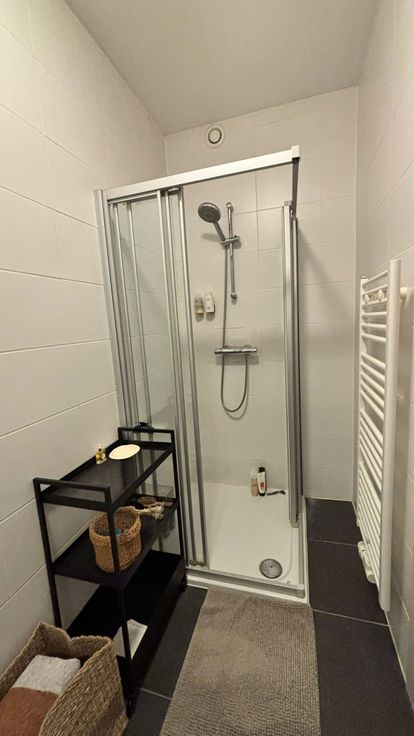 Het appartement heeft een eigen badkamer met douche en lavabo, een apart toilet en een aparte slaapkamer.