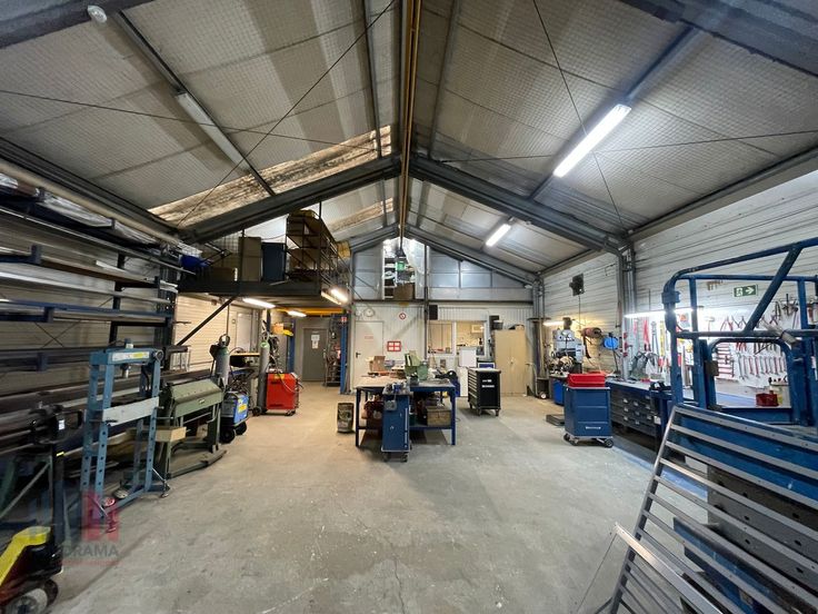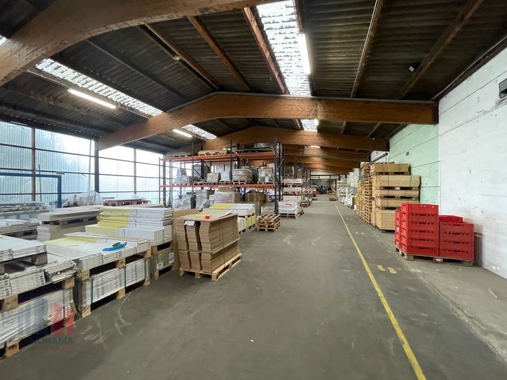 Bedrijfsgebouw bestaande uit een magazijn/atelierruimte +/- 4.390 m² in combinatie met +/- 590 kantoorruimte en +/- 510 m² sociale ruimte op een terrein van maar liefst 7.400 m² te koop.