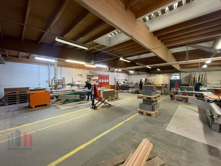 De magazijnruimte, die grotendeels ingericht is als atelierruimte/schrijnwerkerij, is opgebouwd uit een staalconstructie in combinatie met houten gelamelleerde liggers en heeft een vrije hoogte variërend tussen 3,14 en 4,60 meter. Het magazijn is zowel aan de voor als achterzijde van het gebouw toegankelijk via verschillende automatische sectionale poorten. De ruimtes zijn voorzien van o.a. verschillende lichtstraten, polybetonvloer, LED-verlichting en sanitair. Het bedrijfsgebouw wordt verwarmd via een houtstookinstallatie.