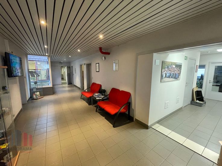 Aan de voorzijde van het bedrijfsgebouw bevinden zich de kantoorruimtes ( +/- 590 m²) in combinatie met de sociale ruimtes (+/- 510 m²). (refter met volledig nieuwe keuken, kleedkamers en sanitair). De meeste kantoorruimtes genieten van heel wat natuurlijke lichtinval en zijn voorzien van alle hedendaagse technieken, bijkomend zijn er verschillende aparte vergaderzalen. De sociale ruimtes bestaan uit sanitair en kleedkamers voor zowel mannen als vrouwen alsook een ruime refter met volledig vernieuwde keuken.