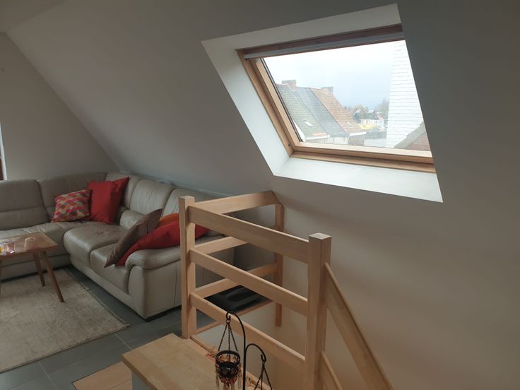 Zonnig groot appartement met ruime living met zicht op water, open keuken, 1 slpkm/1badkm met toilet en bergruimte! 2 de verdieping met aparte trap en fietsberging - beschikbaar vanaf mid april 2025 - bezichtigen op afspraak.