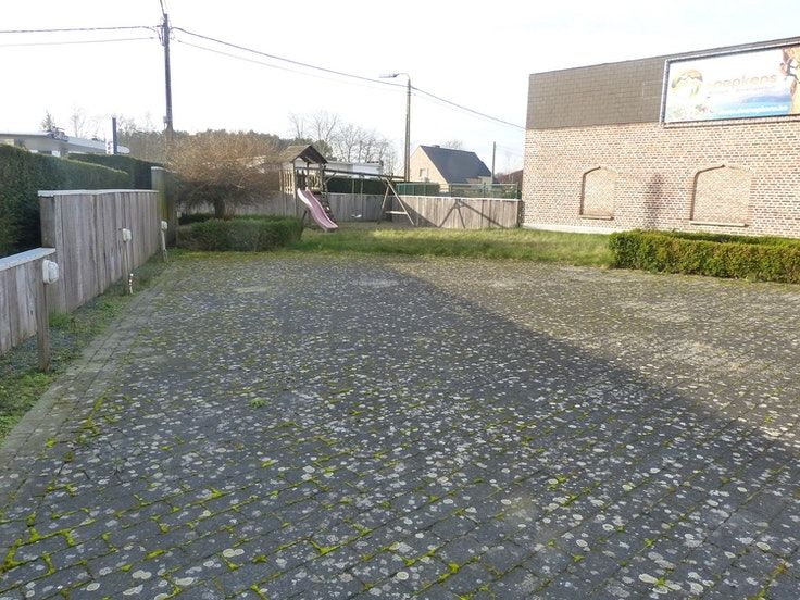 Commercieel handelspand te huur ingericht als horeca zaak. Indeling gelijkvloers: inkom, zaal van 145m² met toog, toiletten ( m/v), doorgang naar een 2de gedeelte met een oppervlakte van 135m², keuken( in te richten) met berging en koelcel, kelder en buitenkoer voor vuil te plaatsen, . Buiten bevindt zich een tuintje met een groot terras ( ongeveer 120m²) dat zuid gericht is. Op de eerste verdieping is nog een ruimte van 160m³ met een toog. Parking voor de deur en eventueel naast het gebouw mits afspraken met naburige zaak. Het pand is direct beschikbaar!