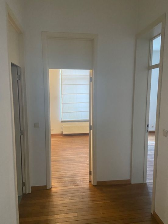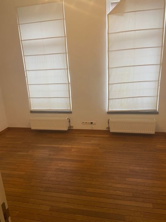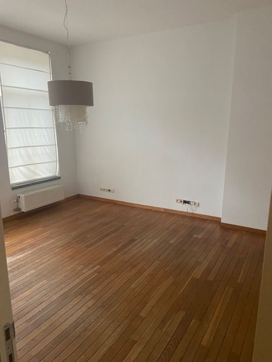 Het appartement op het 1e verdiep valt op door zijn hoge plafonds en vloer uit parket. Het is hier heel aangenaam en rustig wonen in een kleinschalig gebouw met in totaal 1 kantoor op het gelijkvloers en 2 appartementen.