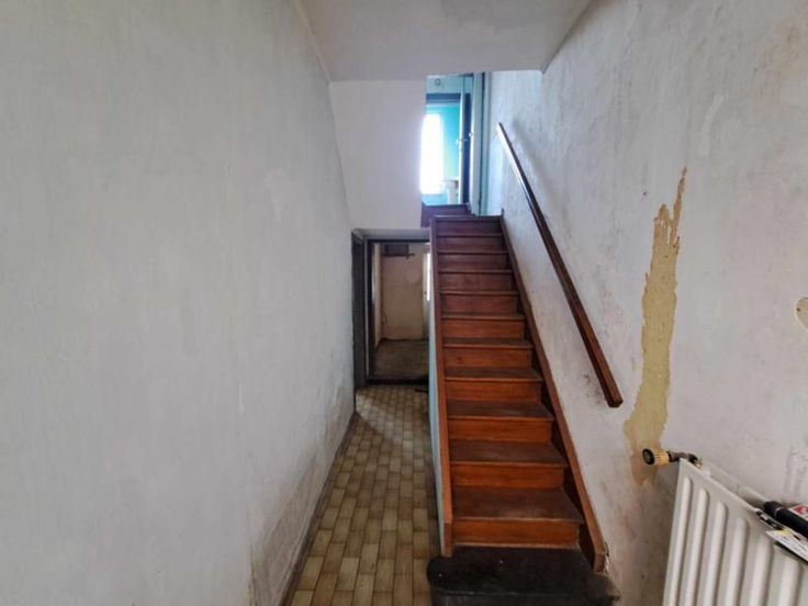 Maison mitoyenne 3 chambres avec petit jardin; composée comme suit: Rez-de-chaussée : hall d'entrée, séjour, cuisine et arrière-cuisine avec accès au jardin Entre-sol : un WC et une chambre 1er étage : une chambre avec salle de bain 2ème étage : une chambre Chauffage central au gaz (chaudière de 2021) Châssis aluminium simple vitrage