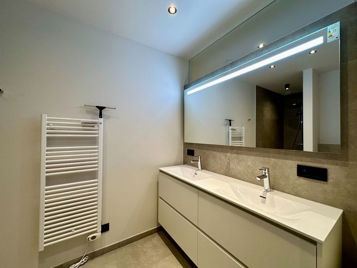 - Ruime en comfortabel ingerichte badkamer met natuurlijk licht, voorzien van inloopdouche, dubbele wastafel met kast en extra toilet.