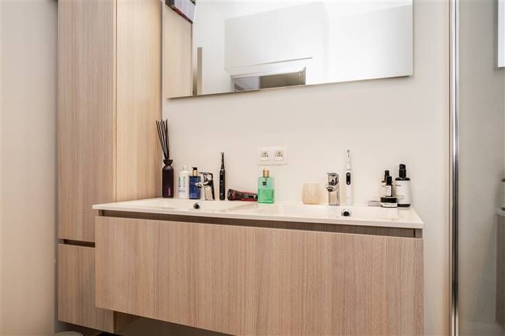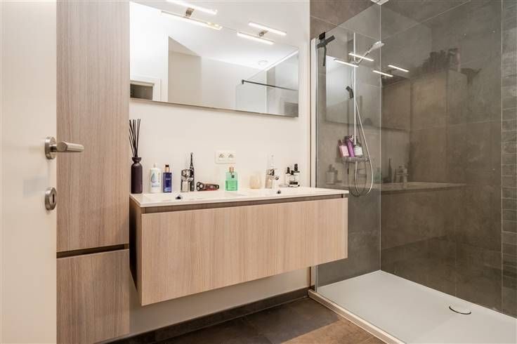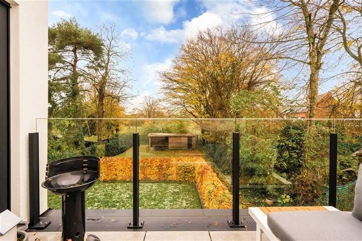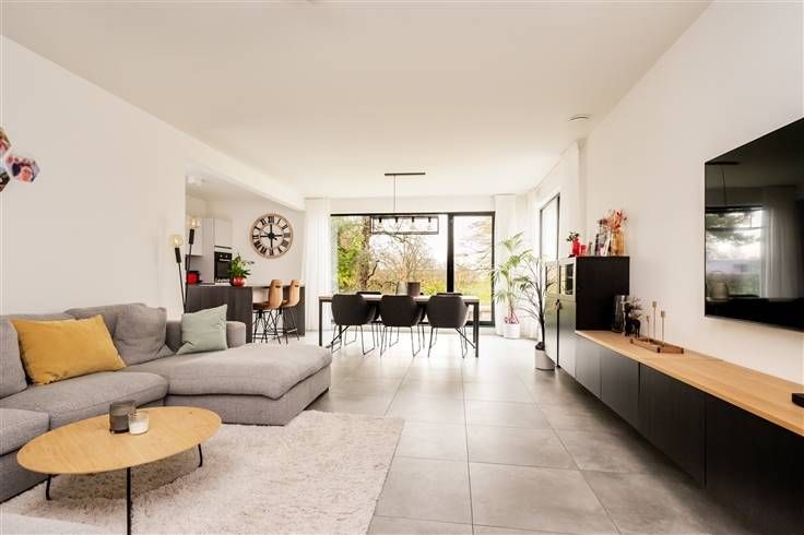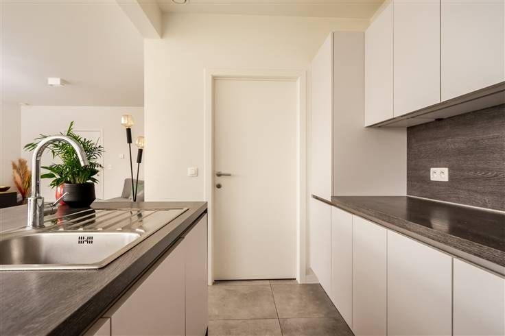 Hoogstaand kwalitatief nieuwbouwappartement in een gebouw met 4 appartementen met een mooie buitenruimte. Inkomhal met vestiaire, toilet, zeer lichtrijke leefruimte met deels open keuken en aansluiting met een prachtig terras dat uitkijkt op een groene omgeving. Aan de volledig ingerichte keuken is een zeer grote berging met aansluiting voor wasmachine en droogkast.  Badkamer met douche en dubbel lavabomeubel en 2 ruime slaapkamers.  De afwerking is gegarandeerd met zeer mooie materialen en met oog voor detail. De buitenruimte, privé tuin voor de gelijkvloers appartementen en de gemeenschappelijke tuin met tuinpaviljoen (fietsenberging)  is aangelegd en wordt onderhouden. Vloerverwarming in combinatie met een warmtepomp is de ideale verwarming aan een super lage verbruikskost. Per appartement is een parking voorzien op de oprit waarbij, in het rechtse gelijkvloers appartement, een inpandige garage is voorzien. Zeer goede ligging in een groene omgeving, kortbij het centrum, station, winkels en invalswegen.