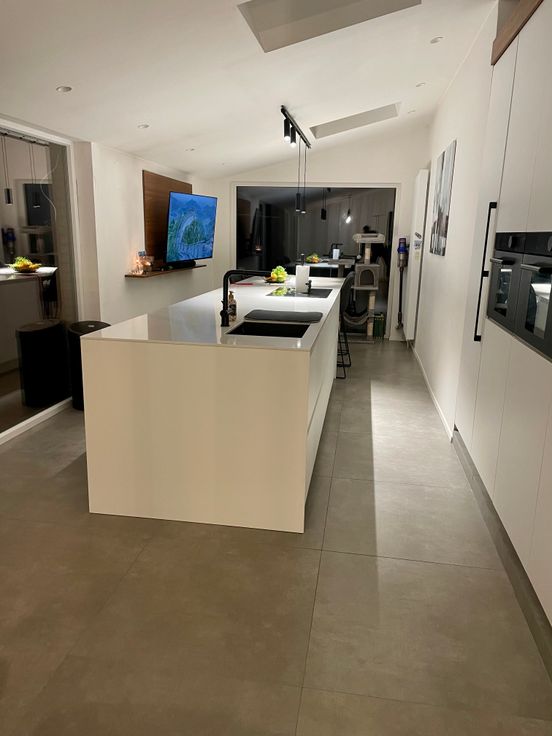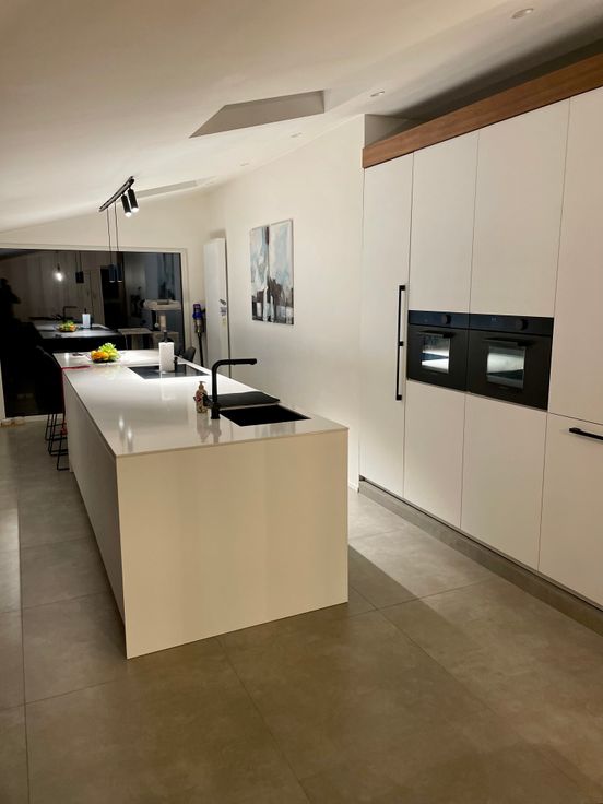 Matériaux de Qualité : Escalier sur mesure et cuisine haut de gamme, alliant fonctionnalité et esthétique.