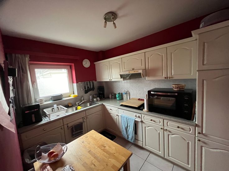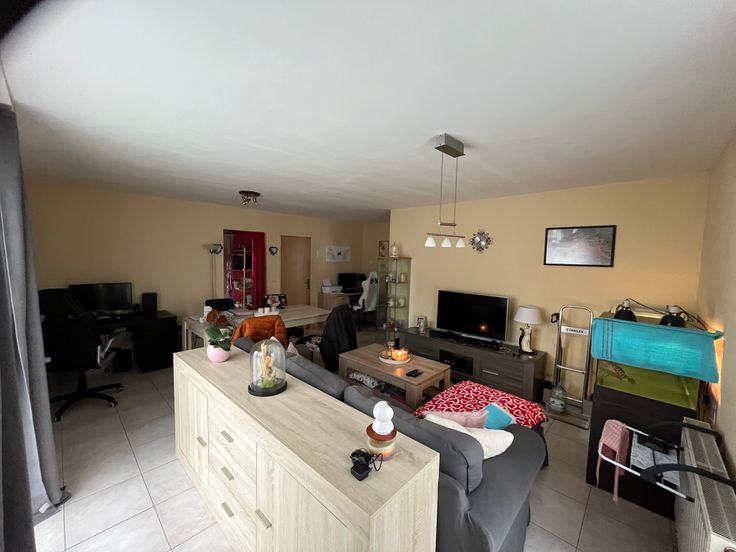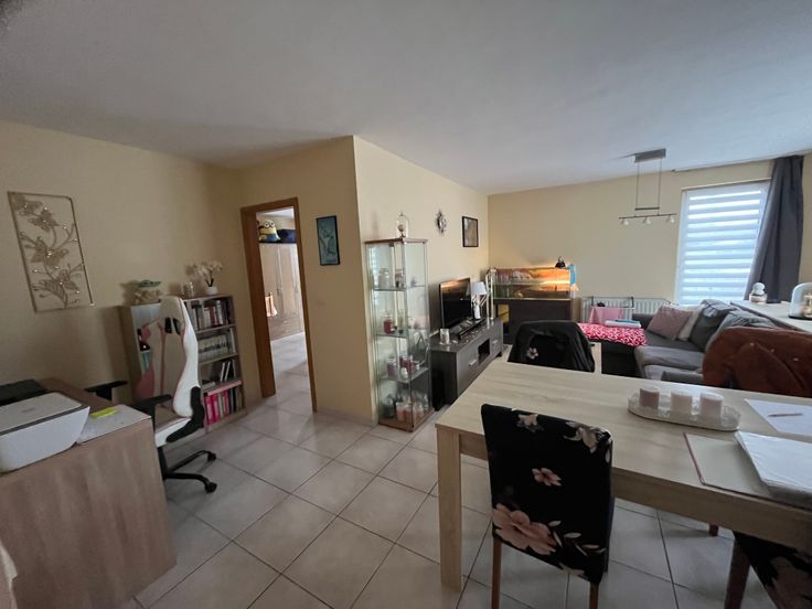 Grand espace Salon-Salle à manger + coin bureau et une chambre spacieuse, Cuisine équipée avec four électrique, taques Gaz, Frigo-Congélateur.