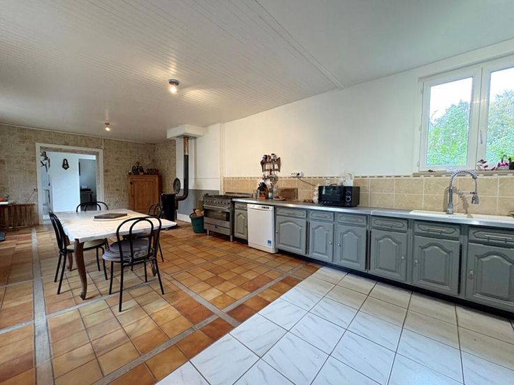 L'habitation principale comprend de plain pied : entrée, grande pièce de vie, cuisine ouverte sur séjour, 3 chambres, salle-de-bains.