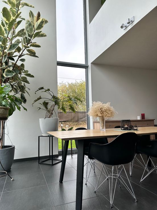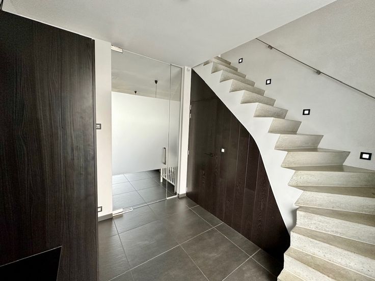 Bij het binnenkomen wordt u verwelkomd in een stijlvolle inkomhal met een gasten toilette, vestiaire, open trap naar de eerste verdieping, verder loopt deze door naar de ruime en lichte leefruimte.