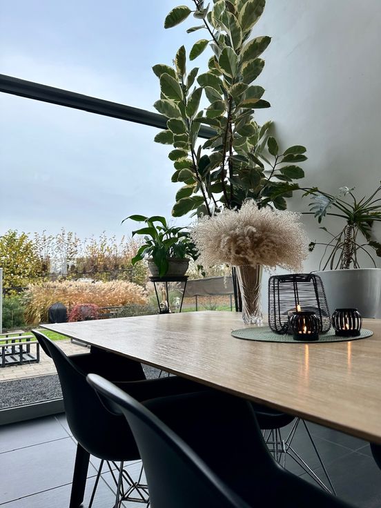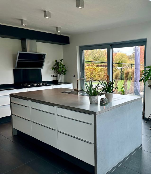 Aansluitend vindt u de open keuken, volledig uitgerust met en een modern kookeiland uit gepolierde beton. Deze ruimte sluit perfect aan op de grote tuin ,door de grote raam partijen in 3x dubbel glas, met een ruim terras waar u heerlijk kunt genieten van de zon. Naast de keuken heb je een berging/waskot die doorloopt naar de garage.
