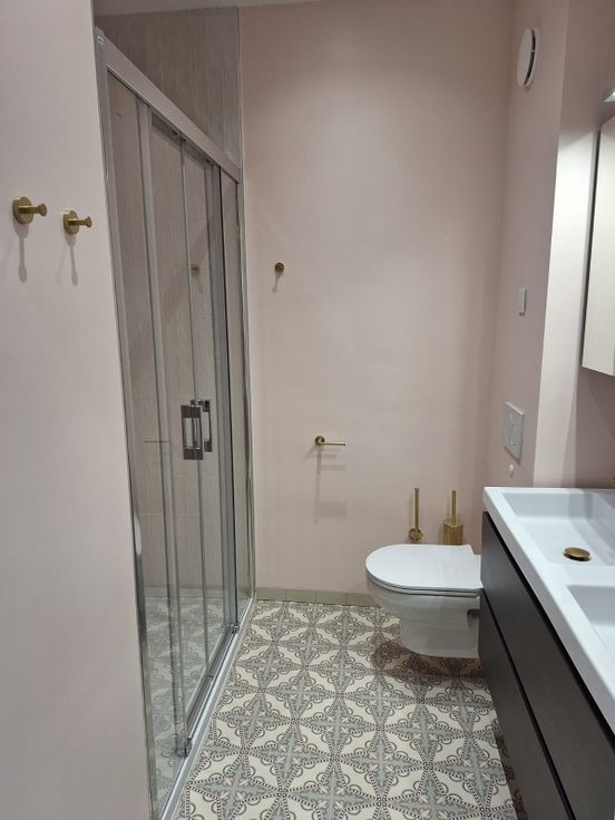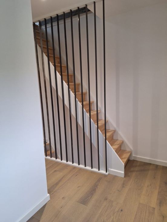 Op de eerste verdieping bevindt zich de eerste slaapkamer, badkamer (voorzien van dubbele wastafel, douche en WC).
