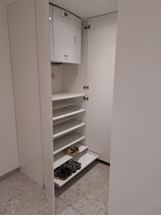 Er werd ook ruimte voorzien voor wasmachine en droogkast.