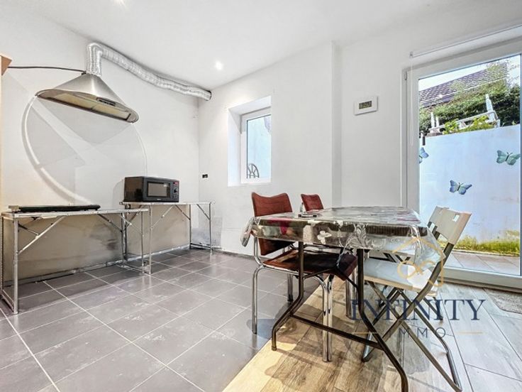 Infinity Immo a le plaisir de vous présenter cette maison située à Chênée, idéale pour une famille ou un entrepreneur à la recherche d’espace et de polyvalence. Au rez-de-chaussée, vous découvrirez un living lumineux de 22 m², une cuisine meublée fonctionnelle de 10,5 m², une salle de bain compacte de 3 m², une chambre confortable de 12 m², un hall d’entrée de 3 m², ainsi qu’une buanderie pratique de 3 m². Cet agencement offre un cadre de vie agréable et bien pensé. Le premier étage, à rénover, propose un espace indépendant composé d’un living de 17 m², d’un espace cuisine de 12 m², d’une salle de douche de 4 m², d’une chambre de 12 m², et d’un palier de 1 m². Cet étage est idéal pour un adolescent en quête d’autonomie ou pour une petite activité professionnelle à domicile. Espaces extérieurs : La maison bénéficie de deux terrasses, une terrasse arrière de 14 m², parfaite pour vos moments de détente, et une grande terrasse avant de 73 m², idéale pour accueillir vos invités ou profiter des beaux jours. Atouts supplémentaires : Deux carports spacieux : Le premier, de 34 m², est équipé d’une porte sectionnelle électrique, offrant un accès sécurisé et pratique. Le second, de 71 m², est un véritable atout pour un entrepreneur souhaitant stocker du matériel ou garer des véhicules. Accès facile pour une camionnette ou un autre véhicule utilitaire, parfait pour une activité professionnelle. Une dépendance et un hangar, offrant des espaces supplémentaires pour le stockage ou une