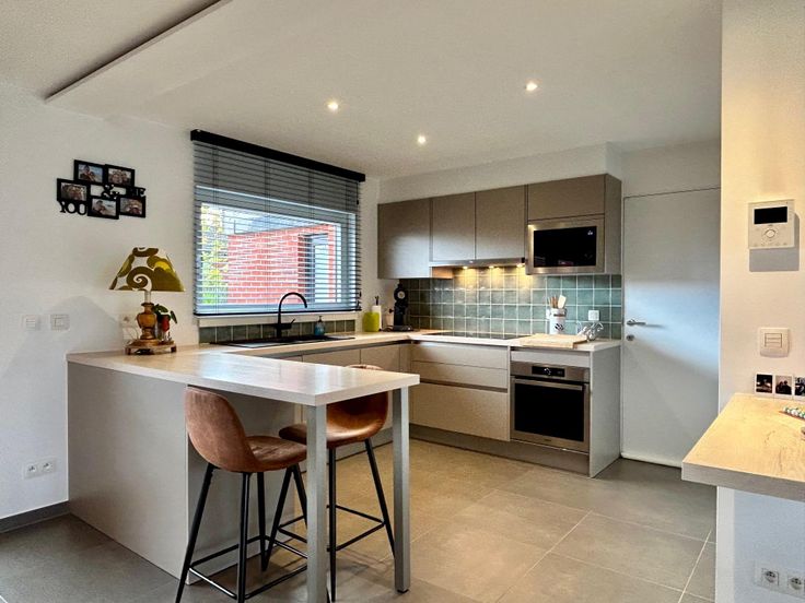 Energiezuinige woning in een rustige en kindvriendelijke omgeving, bestaande uit een inkom met vestiaire en afzonderlijk toilet, lichtrijke leefruimte met een volledig uitgeruste open keuken, bureautje, ruime garage met sectionale poort en een aangelegde zongerichte tuin met terras en tuinberging. Op het verdiep zijn 3 volwaardige slaapkamers, ingerichte badkamer (inloopdouche, lavabo (120 cm) en toilet) en een trapluik naar de geïsoleerde bergzolder. Instapklaar!