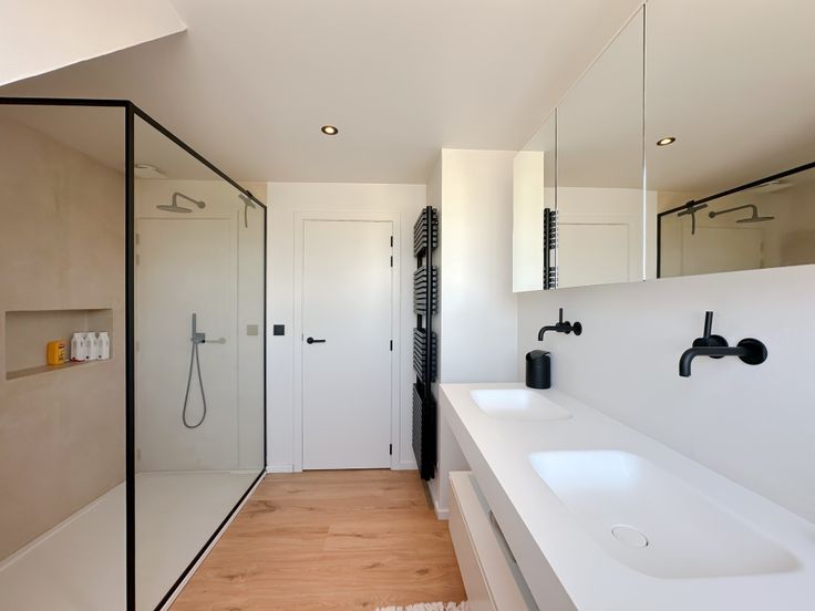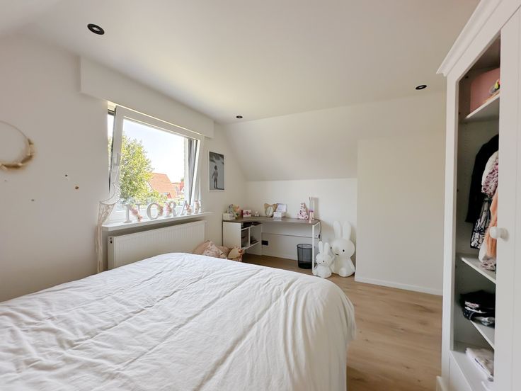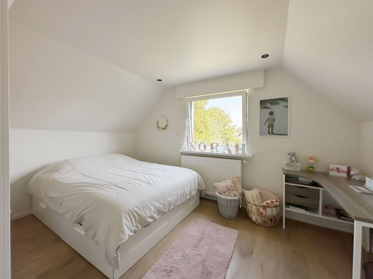 Verdieping: 3 volwaardige slaapkamers met rolluiken waarvan de masterbedroom met mooie dressing en ligbad, ruime badkamer in mortex met dubbele lavabo inloopdouche en toilet.