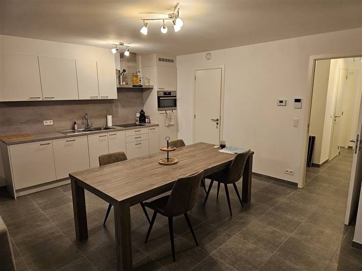 INSTAPKLAAR LICHTRIJK APPARTEMENT MET GROOT TERRAS - Dit volstrekt instapklaar appartement met groot terras op de 1e verdieping (lift aanwezig), is heel rustig gelegen en kijkt uit over groene omgeving, op wandelafstand van centrum Adegem, winkels en openbaar vervoer vlakbij. Bestaande uit: Inkomhal, afzonderlijk toilet met handwassertje, lichtrijke ruime woonkamer met groot terras en open keuken (vaatwas, combi-oven, koelkast, kookplaat, dampkap, spoeltafel), berging/wasplaats, badkamer (dubbel lavabomeubel en inloopdouche), 2 slaapkamers. ONDERGRONDSE AUTOSTAANPLAATS INBEGREPEN!! Gemeenschappelijke fietsenberging, videofoon, voorzien van verlichting, volledig geschilderd, gemakkelijk te onderhouden tegelvloeren. Huurprijs 775€ + 50€ (prov.gem.kosten)/maand. ABSOLUUT TOPAPPARTEMENT!! Mail ons snel voor een bezoek!